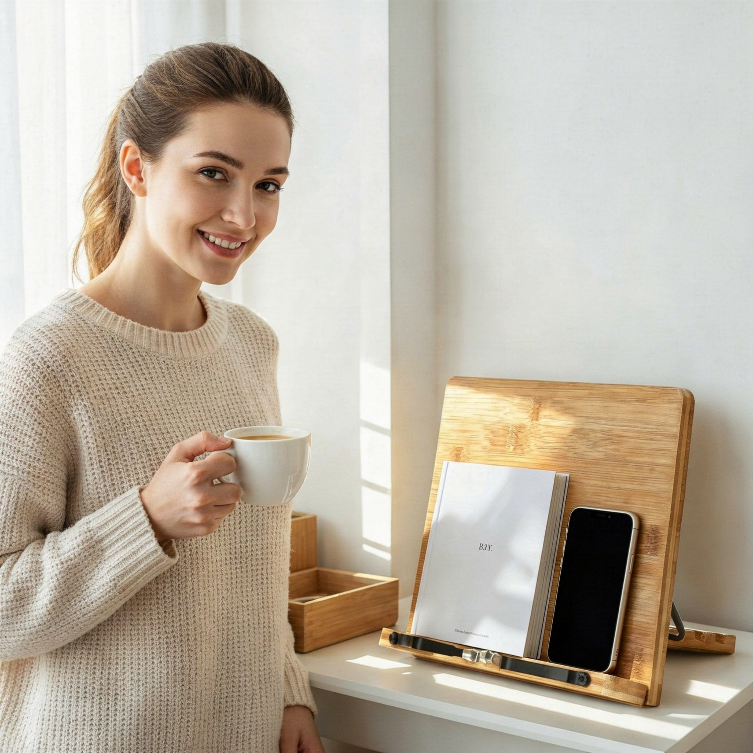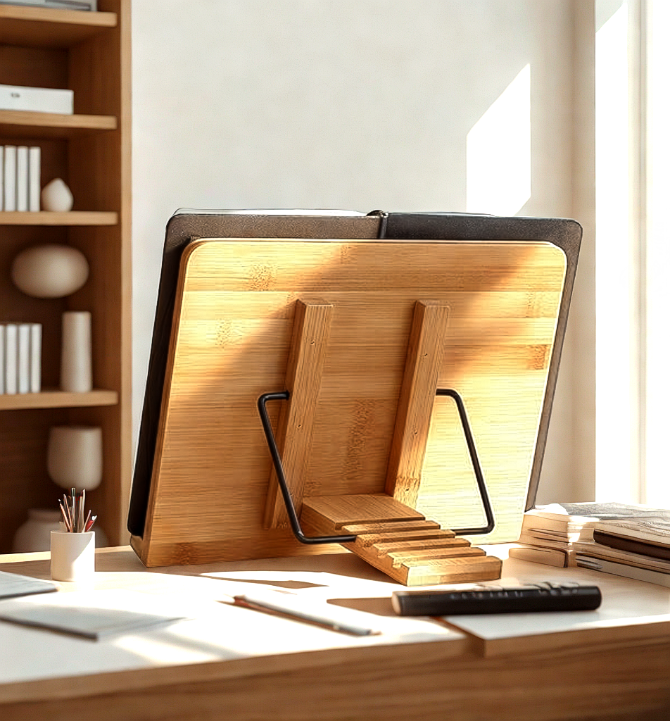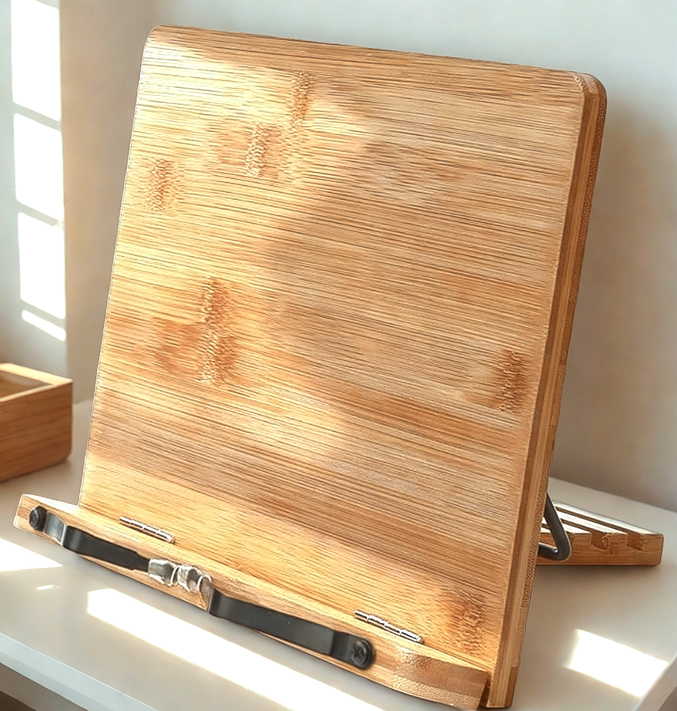 Crafted from natural bamboo, our reading stand is lightweight yet remarkably strong. Naturally water-resistant and durable, bamboo develops a beautiful patina over time — a material that only gets better with use.